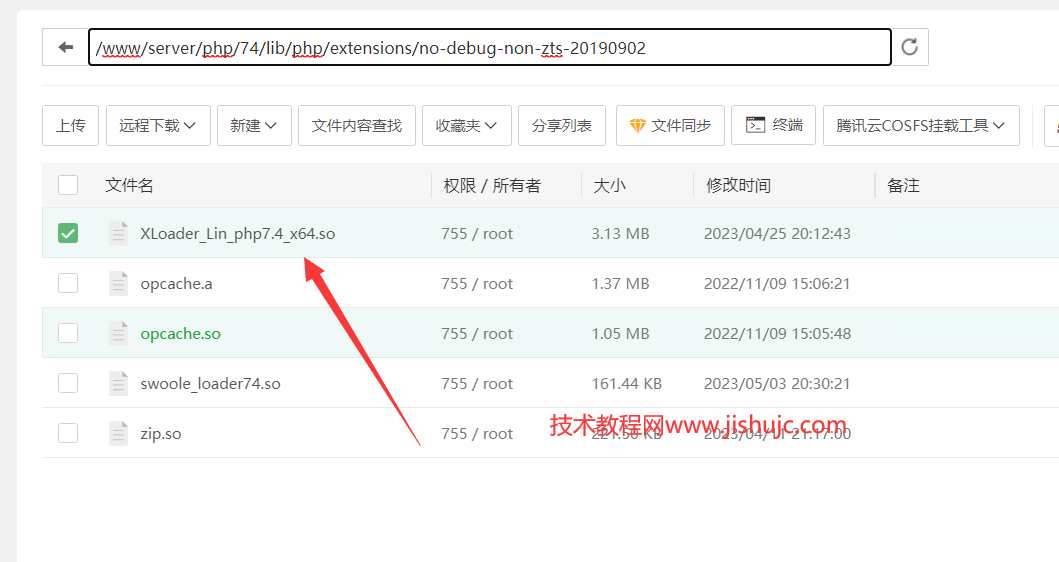 2、打开/www/server/php/74/lib/php/extensions/no-debug-non-zts-20190902/,将扩展上传于此。