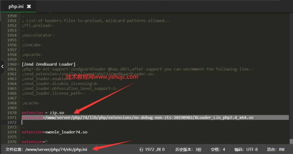 3、打开/www/server/php/74/etc/php.ini,在最后面添加下面的扩展代码: